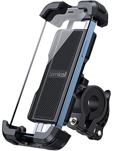 Lamicall Soporte Móvil Bicicleta Soporte Teléfono Moto - 360° Rotación Soporte Manillar para iPhone 14 Pro MAX Plus, 13/12/11 Pro MAX, Mini, XS MAX, XR, X, Samsung, Xiaomi y Otro Smartphone, Negro