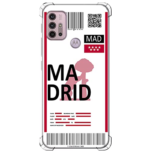 Movilshop Funda Antigolpes para Motorola Moto G Power 2021 Billete de Avión [ Madrid ] Esquina Reforzada Silicona 1.5mm de Grosor Flexible Transparente Bumper Gel TPU