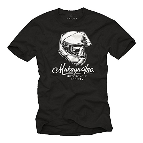 MAKAYA Camiseta Calavera con Casco Moto - Motorcycle Society - Accesorios Motocross Negro XL