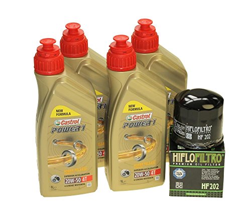 Cambio de aceite Set 4 litros Castrol SAE 20 W de 50 Act Evo 4T Mineral Incluye ölfliter HiFlo hf202 para Honda CBR 400, CBX 750, VF 500, 750, 1000, XLV, KAWASAKI en, GPZ, VN