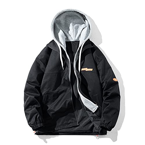 Chaqueta Hombre Deporte Dos En Uno Chaqueta Casual Suelta Hombre Primavera Otoño Chaqueta Con Capucha Hombre Moda Urbana Joven Chaqueta De Manga Larga Con Cremallera Hombre B-Black 3XL