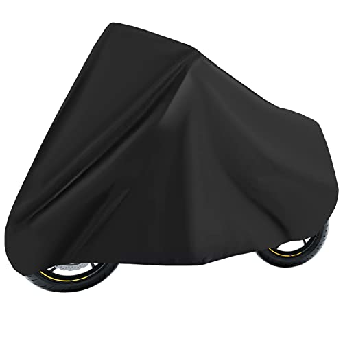 Hanbee Funda para Moto Cubierta Protectora UV de la Motocicleta con Agujeros de Bloqueo, Impermeable y Resistente al Viento Lluvia Nieve,Antipolvo al Aire Libre, 190T, XXL 245X105X125cm,Negro